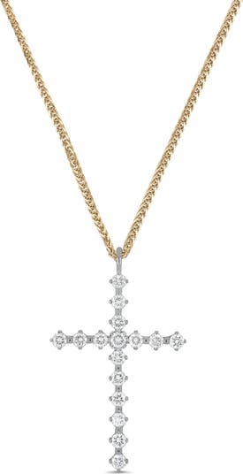 A grand total of 16 round diamonds illuminates the cross pendant that anchors this handcrafted chain of 18-karat gold.