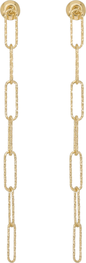 Elevate your office and everyday style with the Sinai Textured Chain Earrings. These earrings feature a sleek interlocking chain design that dangles with understated elegance. Their retro-inspired look offers the perfect mix of bold and refined, making them ideal for work or play. Crafted in 18k gold-plated sterling silver, they add a polished statement to any outfit. A must-have for anyone who loves minimalist statement pieces, these earrings are also a thoughtful gift idea. Keywords: dainty chain earrings, minimalist gold dangle earrings, jewelry for daily wear, retro inspired earrings, trendy holiday gift, delicate gift idea, sentimental jewelry.