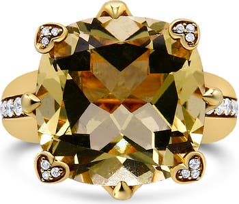 18K Gold Quartz & 1/4 Ct Diamond Accented Cocktail Ring -