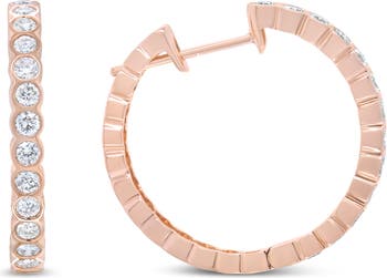 18K Rose Gold 1 Cttw Round Bezel-Set Diamond Hoop Earrings