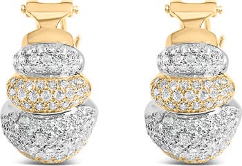 18K Two-Toned Gold 5.00 Cttw Diamond Three-tier Domed Button Omega Back Earrings