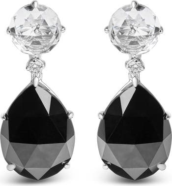 18K White Gold 1/5 Ct Diamond with White Topaz & Black Onyx Gemstone Dangle Earring