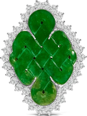 18K White Gold 2.00 Cttw Diamond Halo and Jade Shield Brooch Pin and Pendant