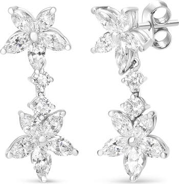 18k White Gold 6 Ctw Marquise Diamond Floral Dangle Drop Earring