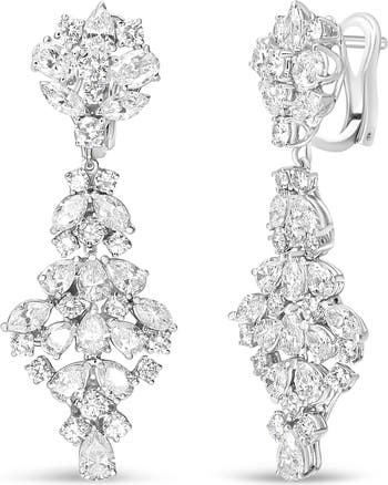 18K White Gold 9 1/2 Cttw Diamond Cluster Drop Dangle Earrings