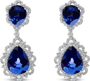 Embrace the allure of sophistication with these stunning 18K white gold earrings, adorned with pear-shaped blue sapphires and encircled by halos of dazzling diamonds. With a total diamond weight of 2 carats, the sparkle contrasts beautifully against the deep blue diffused sapphires, creating a captivating visual harmony. Crafted for elegance, these earrings feature a graceful drop design, ensuring they dangle with purposeful beauty. The secure post and butterfly backings promise comfort and security for any occasion, while the rhodium-plated finish adds an extra touch of shine. Perfect for those who appreciate the finer things in life, these earrings are a testament to exquisite taste and timeless beauty, destined to enhance every ensemble with a whisper of luxury.