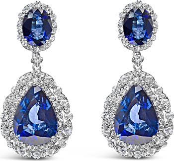Haus of Brilliance 18K White Gold Blue Sapphire 2 3/4 Cttw Diamond Halo Drop Dangle Earring, Alternate, color, White