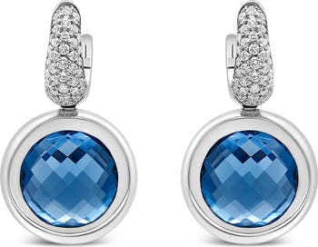 18K White Gold Blue Topaz and 1/2 Cttw Diamond Bale Dangle Earrings