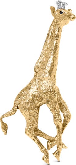 18K Yellow Gold Diamond Accent and Blue Sapphire Giraffe Pin Brooch