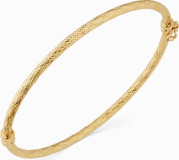 The Prestige Bangle features a sophisticated 18k gold design elevated by a meticulously etched diamond-cut texture that captures and reflects light from every angle. This elegant piece is finished with a polished safety clasp, offering a secure fit and a seamless, high-end look for any occasion.