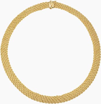 Taking opulence to new hights, four petite gold ropes sit side by side to form this vintage-inspired necklace. Offering bold and beautiful texture, each strand is meticulously woven to perfection, forming a luxurious four-row rope that drapes gracefully around your neckline..