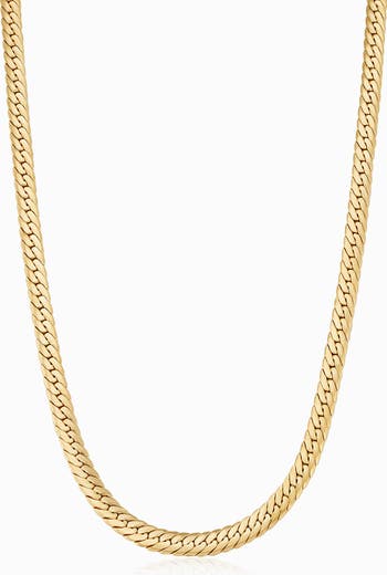 The Sovereign Strand Necklace features a bold, flat-link curb design meticulously crafted in radiant 14k gold for a high-polish, fluid drape. This luxurious statement piece combines architectural strength with a silk-like feel, offering a timeless aesthetic that sits perfectly against the skin for a sophisticated finish.