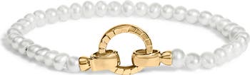 18K Yellow Gold Vermeil Pearl Infinity Lock Tennis Bracelet