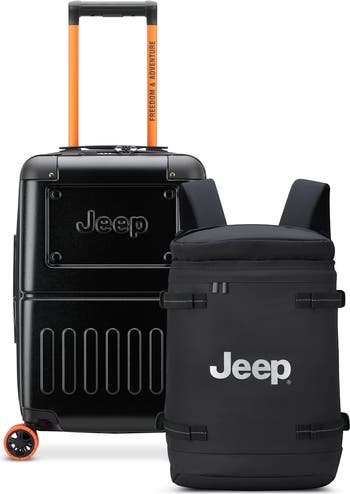 - CARRY-ON: Side and top carrying handles for a swift and secure grip, facilitating easy lifting and carrying as you venture to your next destination. Jeep-Inspired Logo Embossment paying homage to the legendary Jeep automobile, ensuring your luggage is as iconic as your outdoor adventures.
