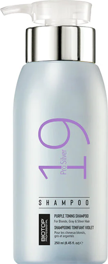 19 Pro Silver Shampoo restores radiant silver, white, gray, and platinum blonde tones, as it neutralizes unwanted yellow and brassy tones. It’s enriched with Green Tea Leaf Extract to hydrate the scalp and help support healthy hair growth. High in Vitamin E and Abyssinian Oil, it provides intense hydration and helps reduce frizz, leaving hair smooth with a beautiful shine. purple KEY BENEFITS • Neutralizes brassy, yellow tones • Adds shine & softness • Hydrates hair & scalp • Fights frizz and smooths damaged hair • Color-safe • SLS, SLES, Paraben, Sodium Chloride & Cruelty-free KEY INGREDIENTS Vitamin E - Increases hair’s strength and hydration Sunflower Seed Oil - Combats breakage, fights frizz, and promotes shine WHO IT’S FOR Platinum Blonde, Silver, White or Gray hair tones HOW TO USE • Dispense 2-3 pumps of 19 Pro Silver Shampoo into hands • Lather with water and massage into hair • Let sit for 1-2 minutes • Rinse hair thoroughly