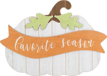 19" White Wooden Pumpkin Favorite Season Hanging Wall Sign