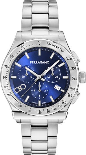 Complications: Date window; elapsed-seconds, -minutes and -hours subdials.