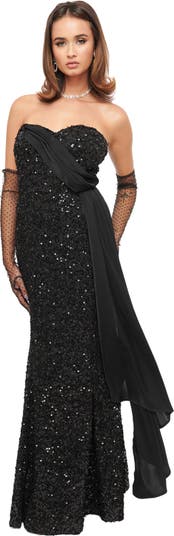 This stunning 1930s mermaid style dress is a dazzling tribute to classic elegance, featuring all-over sequins. The sleeveless design and top silicone gel seam ensure a perfect fit, while the bodice boning gives you an hourglass shape. Complete with an attached sash and back zipper for easy dressing.