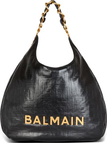 The PB Labyrinth monogram is embossed throughout the soft, crinkled calfskin of a spacious hobo popped with golden gleam at the chain strap and logo hardware.