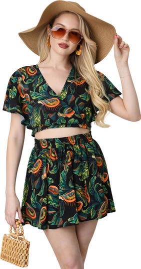 Ignite their desire, dames! This sultry crop top from Unique Vintage is crafted in a lightweight fabric. The sexy surplice neckline drops into an elastic waist while beautiful butterfly sleeves float gracefully over your shoulders!