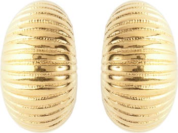 A complete classic. 22ct triple gold plate ridged demi-hoop clip-on earrings. Feature a beautifully sculpted shape.