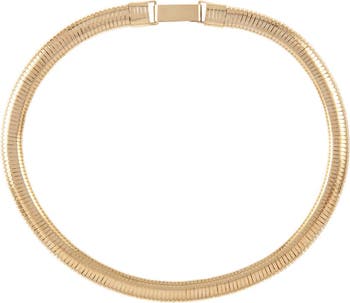 Everyday essentials. Gold plated flex collar necklace features shiny and textured alternating ribbing. Closes with a clip-in clasp.