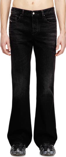 Heavy whiskering brings timeworn history to these slouchy bootcut jeans made from nonstretch denim. The brand's iconic logo flag cuts across the coin pocket.