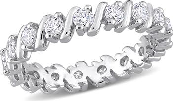 This moissanite eternity band in sterling silver offers timeless beauty, with a seamless row of dazzling stones that catch the light from every angle. A sophisticated choice for celebrating lasting love.