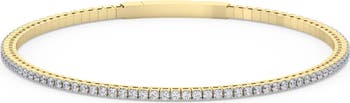 This classic women's bracelet features 91 round brilliant cut lab grown diamonds. All diamonds are prong set in solid yellow gold.