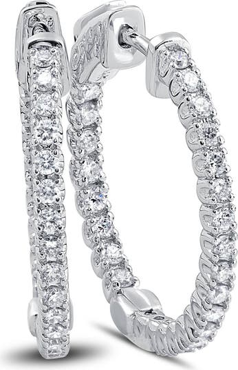 Womens earrings feature 50 round brilliant cut natural diamonds. All diamonds are set in solid 14k white gold. The earrings are secured with vault lock snap closure. The earrings measure 1" tall and perfect for every day wear.
