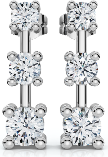 Add timeless sparkle to any look with these 1 Ct Three Stone Drop Earrings, crafted in radiant 10K gold and set with brilliant lab-grown diamonds. Each earring features a graceful vertical trio of round stones, designed to catch the light with every movement for maximum fire and shimmer. Measuring approximately 5/8" tall, the elegant drop silhouette offers noticeable brilliance while remaining refined and wearable for both everyday style and special occasions. The classic three-stone design symbolizes past, present, and future—making these earrings a meaningful gift or personal treasure. Beautifully crafted and ethically created, these diamond drop earrings deliver enduring shine with modern sophistication.