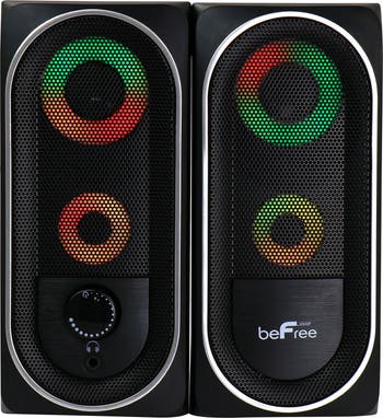 Experience your favorite games on a whole new level with the beFree Sound 2.0 Computer Gaming Speakers. Innovative speakers deliver nuanced sound and clarity and elevated sound quality without distortion, allowing you to transform yourself to uncover new worlds. Features RGB lights with a touch shut off option, and universal USB connection for desktop and laptop computers. Simple On/Off and volume controls. The power is at your fingertips. Item Dimensions: 3.25" x 3.25" x 7.20" Item Weight: 1.76lbs