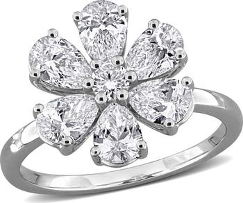 Put the finishing touch on a luxurious look with this charming flower ring features pear round-cut lab-grown diamonds crafted in 14-karat white gold. This beautiful ring is enhanced with a high polish finish.