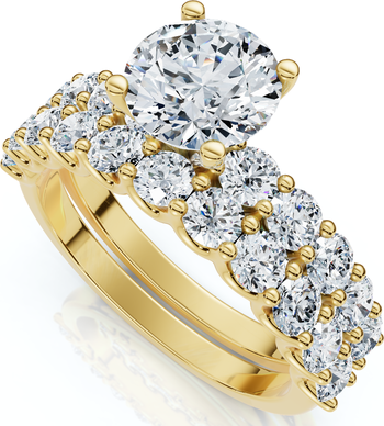 Elegant and timeless, the Certified 2 1/2 Ct Celeste Diamond Engagement Ring Set is crafted in luminous 10K gold and features brilliant lab-grown diamonds for exceptional sparkle. At its center sits a stunning 1 ct round diamond, beautifully elevated to maximize light and brilliance. The engagement ring is adorned with shimmering accent diamonds set in a delicate U-prong setting style, allowing each stone to shine with maximum brilliance while creating a seamless, flowing look. Paired with a perfectly matching wedding band, this set enhances the overall sparkle and creates a cohesive, sophisticated design. Certified for quality and designed for lasting beauty, this ring set is the perfect symbol of enduring love and refined elegance.
