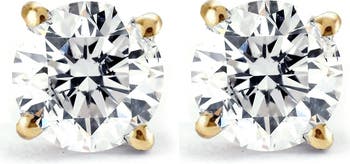 This stunning pair of women's earrings features two matching round brilliant cut lab grown diamonds. Both diamonds are prong set in solid 14k gold with screw backs.
