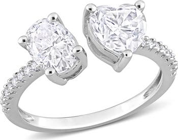 Fall in love with this stunning Oval and Heart-Shape Moissanite Two-Stone Ring in Sterling Silver. The blend of the elegant oval and romantic heart-shaped stones creates a breathtaking design that symbolizes love and commitment. Perfect for any occasion, this ring is set in sterling silver, offering a timeless, sparkling look.