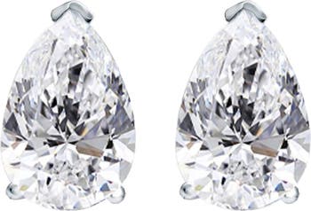 Womens matching pair of stud earrings features two pear shape genuine lab grown diamonds. Both diamonds are prong set in solid 14k white gold push backs.