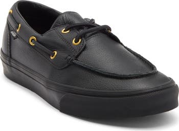 Vans puts their spin on a timeless 2-eyelet leather boat shoe with their traditional vulcanized build and signature rubber waffle sole.