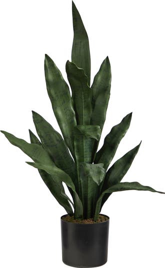 Shh… no one will know your secret with this Artificial snake plant. The waxy, variegated leaves resemble the real one's intricate detailing that is unique to the Sansevieria. Bring vertical foliage to your space with upward facing, sword-like leaves, maintenance-free. Standing 2' from a nursery planter (included in height), add this faux snake plant to compact spaces like awkward corners, home offices, bathrooms and bedrooms. Silk plants are manufactured using synthetic materials, such as polyester material or plastic, and are well designed and constructed to be life-like in appearance. This item will need to be re-shaped when removed from the secure box to allow it to reach its fullest size. Your artificial plant will look beautiful for years to come; simply wipe clean with a soft dry cloth when needed.