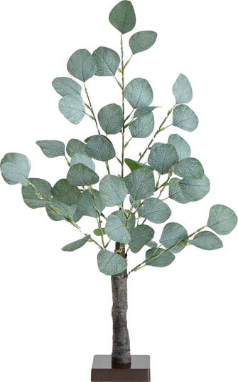 The artificial eucalyptus tree with lights will bring that soothing, cozy glow in your space when you need to relax. Inspired by the dreamy Floridian countryside, you'll see the attention to detail in every leaf in shades of smoky green, just as in the wild. Crafted from high-quality materials, feel free to bend the branches. for a custom look. Accented with 60 energy-efficient LED lights, this piece will become the centerpiece of your home. Standing 2' from a sturdy base, DIY and display in a planter of your choice. Great for desktops in need of a light touch.