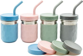 WeeSprout 3-in-1 Stainless Steel Cups for Kids are the perfect step up for little ones learning to sip like big kids — without giving parents a reason to stress over spills. These ultra-durable cups are designed to grow with your child, functioning as smoothie cups, food containers, and on-the-go snack jars. Designed with speech pathologist recommendations in mind, each cup includes a curved straw with an open valve to support healthy oral development and proper jaw alignment — ideal for kids transitioning from a sippy cup to an open cup. Soft, food-grade silicone straws are gentle on gums and teeth and ideal for thicker drinks like smoothies. Built-in straw stoppers keep straws in place — no more flying messes or sticky hands. Each set includes both drinking lids and storage lids for maximum versatility. Protective silicone sleeves provide grip, help prevent drops, and insulate cold drinks to keep little hands comfortable. Available sizes: – 8 oz cups measure 2.88" W × 4" H – 12 oz cups measure 2.88" W × 5.5" H Recommended age: 3 years and up (use with adult supervision)