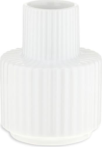 An artful sculpture on its own, this candleholder is cast in fine porcelain with distinctive grooves that create a balance between soft and stringent.