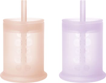 Made from nontoxic, food-grade silicone, these straw training cups help your child's development toward drinking independence with safety and ease. The 5-oz. size is perfect for little hands just learning the nuances of using a straw with a gentle, gum-friendly design. They feature a weighted base for stability, and the translucent silicone encourages your child to explore more independently, reducing anxiety by showing how much drink is left.