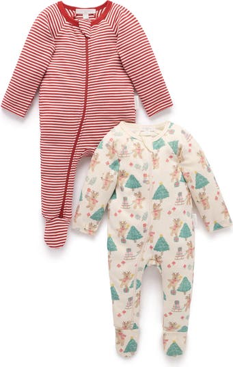 Soft, easy and practical, our 2 Pack Christmas Zip Growsuit is a wardrobe essential for your little one. Featuring a two way zip all the way through for quick and easy dressing, and a safety fold at the neck. Made from a thick 100% Cotton interlock, which is warmer and thicker than a standard growsuit.