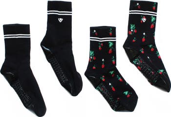 Bold stripes lend a collegiate aesthetic to grippy, stretch-cotton crew socks featuring extra grips at the ball and heel of the foot for superb traction.