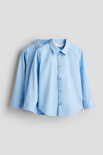 School shirts in woven fabric with an easy-iron finish. Collar, buttons down the front, a yoke at the back and long sleeves with buttoned cuffs. Rounded hem.