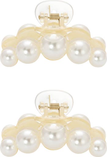 Toss up your tresses with baroque-inspired elegance with this duo set of claw clips embellished with lustrous faux pearls.