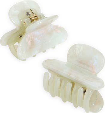 Double-walled jaw clips add glossy texture to any updo while keeping your tresses in place.