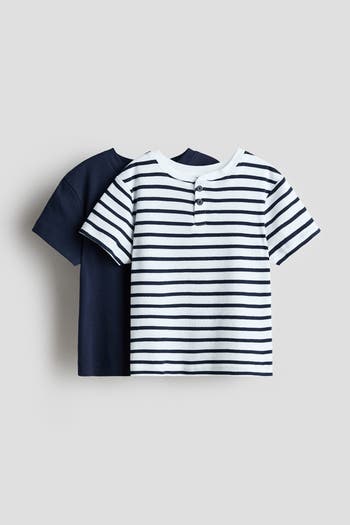 T-shirts in soft jersey with a round, rib-trimmed neckline, button placket and gently dropped shoulders.