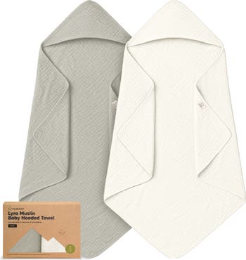 Enjoy the cloud-soft comfort of KeaBabies 2-pack Lyra Muslin Baby Hooded Towel! Crafted from absorbent, gentle Lyra Muslin, it's generously sized for newborns to age 5. The cozy hood wraps your baby in warmth, making bath time a fun, snuggly moment!